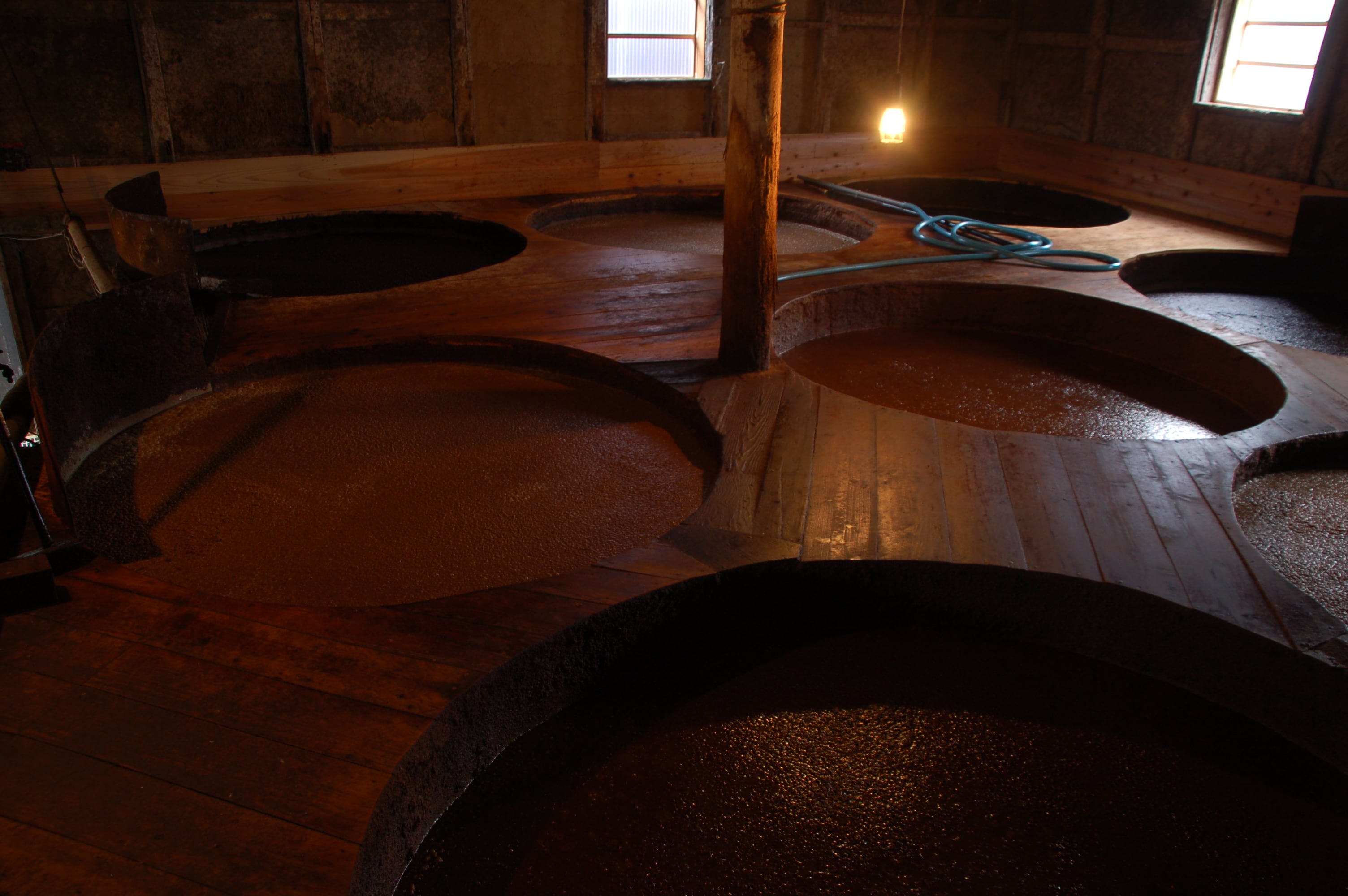 上野商店の「もろみ」は、小豆島の蔵元「ヤマロク醤油」が伝統ある「木樽」で1年半〜2年かけて発酵・熟成させた「もろみ」を使います。実は木樽仕込の醤油は、日本全生産量の1%程度と希少になった製法。多くは温度調整して発酵を促し、6ヶ月前後と短期間で造る「タンク」仕込み。春夏秋冬の温度変化のなかで、じっくりと育むことでまろやかで深みのある味わいになります。